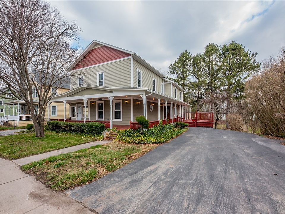 Don't miss out on this stunning modern farmhouse in Ontario, situated on nearly half an acre of land! As you approach, you'll be captivated by the charming colonial exterior complete with a wrap-around porch. Step inside to discover a jaw-dropping open concept layout that will leave you in awe. The kitchen boasts updated cabinets, butcher block countertops, a spacious island perfect for hosting guests, and all appliances are included. The kitchen flows seamlessly into a large living area featuring a cozy pellet stove, ensuring an efficient way to heat the home. Gorgeous hardwood floors grace the main living space, with a versatile first-floor bedroom, den, or office available. An enclosed entry porch and modern half bath complete the first floor. Upstairs, you'll find four bedrooms adorned with plush new carpeting and a stylish full bathroom. Step outside onto the deck to enjoy your morning coffee, surrounded by the tranquil sounds of nature. Conveniently located near amenities such as grocery stores and restaurants, this home also boasts a 5-year-old roof, and a h20 tank. Additional stone driveway to the left of the house! Delayed Negotiations until Wednesday 4/3 at 12pm