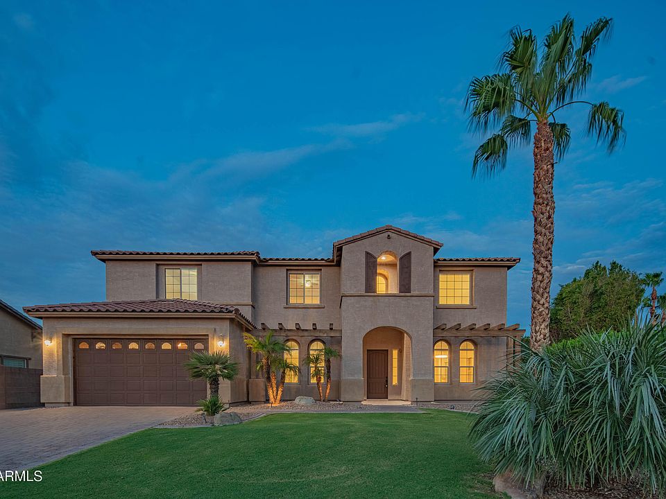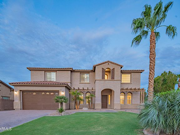 Welcome to Arboleda Estates - an exclusive gated community in the heart of Chandler. This stunning 4,816 sq ft home, built in 2014, features brand-new tile flooring, new carpet in all bedrooms, soaring ceilings, a gourmet kitchen with dual granite island, freshly painted house interior, cabinetry and a huge pantry. The downstairs offers a private suite with its own living area and backyard access, perfect for guests or multi-generational living. Upstair, enjoy a spacious loft and a luxurious primary suite with a sitting area and his & her closets. Outside, relax in your private retreat with a sparking pool ( built in 2017 ) , covered patio and pavers. Additional highlights include an extended four car garage, EV charging outlet and cul-de-sac lot.