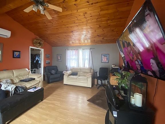 Comfortable home with 12 acres of land! Large spacious kitchen and livingroom with patio doors to deck. Large attached garage!