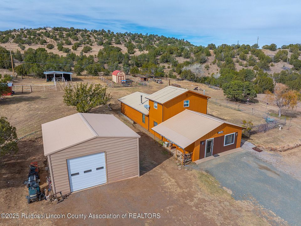 Saddle up and enjoy country living in this charming 2-bed, 2-bath, 1800+- sq ft home on 1.38 acres with stunning Capitan Mountain views! Originally a D-log cabin with CO logs, this inviting property has thoughtful additions, a main-level primary suite, large bonus room, vaulted T&G ceilings, and an open kitchen with birch cabinets. Cozy up to the wood burning stove and enjoy the abundance of wildlife. Horse lovers will appreciate the 2 corrals with stalls, hay barn, tack room, and fully fenced grounds, plus a fenced garden. A spacious 24'x26' insulated workshop, large storage shed, new exterior paint, new upstairs windows (Nov 2025), and a durable metal roof complete this ideal retreat.Located minutes from Capitan NM, and right off of Hwy 48, the possibilities are endless