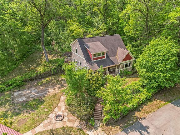 Privacy at its best! Almost 8 acres of wooded beauty w/ private access & circle drive. Wonderful Craftsman style two story w/ welcoming front porch, vaulted LR w/ floor to ceiling stone fplc & built ins. Wood floors in DR, entry &KT. Gourmet kitchen features center island w/ Jennair stovetop, granite counters, SS applcs. Main flr master suite has walk in closet & private bath w/ dual vanity & separate tub / shower. Two generous upper level brs & finished lower level walk out w/ family room, BR, bath & second kitchen. This would be ideal for entertaining or mother in law apt. Huge deck off main level & patio off walkout level. Spectacular 40 x 64 outbuilding/garage/shop. You will not be disappointed! The shop is heated and insulated with in floor heat, tall ceilings, bathroom & kitchen area. Currently used as a craft room for pottery, a wood working room w/ built in air filtration system and garage space. There is a rear side overhead door as well. Less than 30 minutes to metro.
