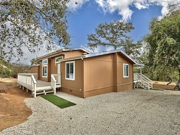 Welcome to this delightful manufactured home, perfectly positioned on a generous 5.5-acre corner lot in the sought-after De Luz area of Temecula. The home exudes charm, featuring three bedrooms and two bathrooms, all anchored on a durable permanent foundation. Recent updates bring a fresh and modern touch, with newly painted walls, plush carpeting, and laminate flooring.