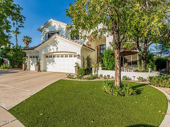 The total package awaits on a stunning golf and mountain view cul-de-sac lot with an impressive list of upgrades. This beautifully renovated home features newer roof, HVAC, water heater, misters, carpet, iron doors, epoxy floors and the list goes on. The kitchen shines with granite counters, gas range, 3 ovens and all high-end appliances. The primary bath is a spa-like retreat with marble throughout. Two stacked stone fireplaces create a cozy family room and loft space. Step into a lush backyard oasis with limestone patio, turf lawn, putting green, gas fireplace, enterainer's bbq island and an automated saltwater pebble pool. Pool can be heated or cooled. Enjoy all Arrowhead has to offer: hiking, golf, shopping, P83 with spring training, Fox Restaurants and so much more!
