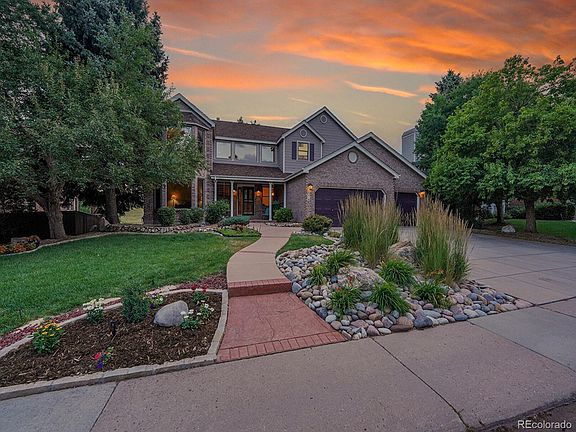 Elegant Stratton Ridge home featuring a walkout basement, oversized 3-car garage, and open space backdrop offering unmatched privacy and tranquility! Enter from the covered front porch into the foyer, where a grand staircase and gleaming hardwoods enhance the open layout. Vaulted ceilings, soft hues, and expansive windows framed in wood create a serene, ambiance throughout. Just off the entry, a bay-windowed sitting room invites quiet moments, while the dining room sets the stage for hosting intimate dinners. Soaring ceilings and natural light define the family room, where a floor-to-ceiling gas fireplace with artisan brickwork, built-in wet bar, and sweeping views create a striking focal point. Seamlessly connected, the eat-in kitchen shines with Avonite™ countertops, subway tile, upgraded appliances (20-21) and rich wood cabinetry with a butler’s pantry. Enjoy connected comfort inside and out, with a cozy breakfast nook opening to an expansive covered deck, for al fresco dining. A main-level guest suite with deck access pairs with a updated full bath, while a fully updated main-floor laundry room makes daily tasks efficient. A true escape, the upstairs primary suite shines with soaring ceilings, sitting area, and a spa-like 5-piece bath, with dual walk-in closets tailored for effortless organization. A private balcony offers the perfect perch for morning coffee and tranquil views. Two additional spacious bedrooms share a well-appointed newly updated full bath. Host with flair in the finished walkout basement, where a pub-style bar, spacious lounge, chic bath, and private guest suite create the ultimate gathering space. A nature lover’s haven, the multi-level covered patio features a cascading water feature, serene pond, lush greenery, and open-space views. Backing to Sand Creek Park, steps from Sand Creek Elementary, all new house painting (22), brand new roof (March 25), brand new remodeled bathrooms, and close to Chatfield Reservoir.