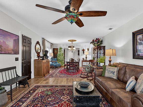 The main farmhouse has been completely renovated inside with meticulous attention to detail. Featuring two bedrooms and two bathrooms, the home showcases luxury vinyl plank flooring throughout, complemented by abundant built-ins that add both charm and functionality. The large farm-style kitchen is a true centerpiece, boasting new cabinetry, stunning tile work, and plenty of space for gathering, cooking, and entertaining.