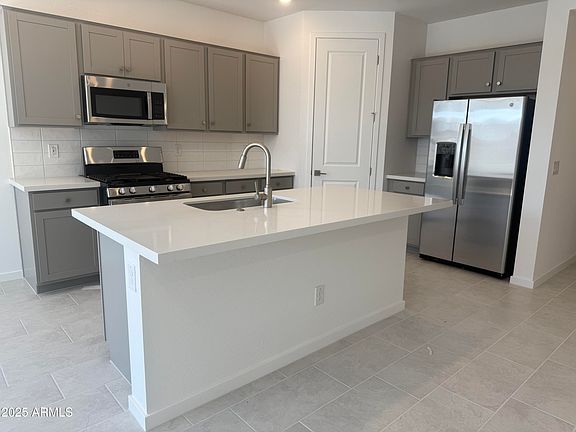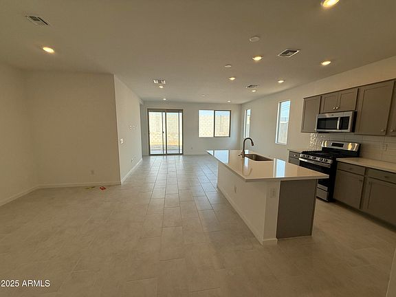 Up to $25,139 seller incentives using preferred lender, towards closing costs and/or rate buy down. This home includes 4 bedrooms, 2.5 bathrooms and a 2-car garage across 1,837 sq. ft. The open great room connects seamlessly to the kitchen and dining area. The chef's kitchen includes a GE gas range, built-in microwave and dishwasher. The home includes Linen Quartz Countertops, Santorini backsplash, Stone Grey 36'' Uppers and staggered 12x24 tile flooring. This home also comes with an Energy Star rating with dual pane low e vinyl windows, Tech Shield Radiant barrier and a smart home package. Located near top Surprise schools, hiking, biking, ATV, and horseback riding trails, Frontera offers plenty of outdoor adventure.