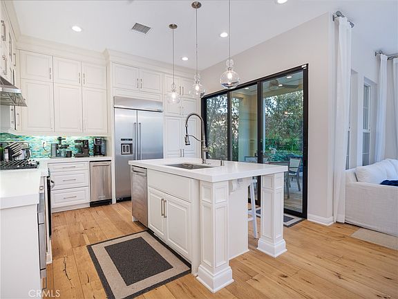 Welcome to The Canyons! The most functional floor plan in the community with an open floor plan that is bright and welcoming! This immaculate Model Home, with over $330K in upgrades, offers 4 bedrooms and 3 bathrooms. One bedroom and bathroom are conveniently located on the first floor. Gorgeous upgraded Bologna style kitchen cabinets with an expansive center island, quartz countertops, stainless steel appliances, floor to ceiling soft close cabinetry, and decorative backsplash! Additional features include: ** Luxury Outdoor Living Space ** Upgraded bath stone packages/accessories ** OWNED SOLAR ** EV Charger ** Loft / Bonus Room with designer built-in cabinetry ** Luxury Hard Wood flooring ** Backyard features a built in BBQ, Fireplace, TV and your very own Pizza Oven ** and MUCH MORE! Spectacular resort style community center featuring massive beach entry pool, splash pad, cabanas, spas, TVs, and cooking area! Walking distance to the award winning K-8 Porter Ranch Community School, and just a short drive down the hill to the fabulous new Vineyards shopping center!
