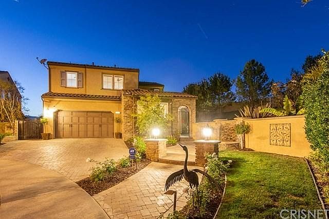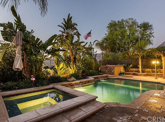 Beautiful 4+3 executive style home in 24 hour guard gated Bella Vista community. Huge, premium culdesac view lot impossible to find with huge grassy area and two fountains. Additionally boasting a private sparkling pool, spa with shade umbrella, built in BBQ, outdoor "California" living room w/fireplace and TV (patio furniture & TV incl.), extensive hardscape/landscape design and beautiful tropical foliage, h2o conservation tool, secondary security gates with RING system and multiple security cameras. The interior features of this open floor plan boasts an upgraded entry door, formal dining room, hardwood floors, LED lighting throughout, granite island kitchen with soft close drawers, stainless steel appliances, remodeled walk in pantry, all tied together with custom Murano handblown Italian glass light fixtures. More features include: Custom designer stone accent wall in family room, ground floor bedroom, spacious loft, master suite with balcony retreat, luxurious master bath, remodeled master walk in closet, plantation shutters throughout, finished attic space perfect for craft, playroom or additional storage, 3 car garage, and so, so much more! Fantastic value oversized, private lot & interior/upgrades compared to neighboring new communities $$...Move in NOW and enjoy! All of this, located walking distance from the sought Porter Ranch K-8 Community School, close to multiple parks and biking & hiking trails, near the upcoming "Vineyards" center with shopping, dining