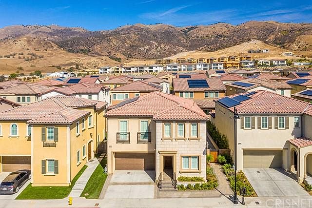 Practically brand new Toll Brothers home in the exclusive, gated "Canyons-Peak" community in Porter Ranch! This popular floorplan features a full bed and bath down plus 4 bedrooms, 3 full baths AND a loft upstairs! Though less than 2 years new the whole house has been improved with over $100,000 spent on the yard alone. Gorgeous in ground spa, and the stack stone hardscape on the spa and built-in BBQ cook station is an eye catching touch. Stone pavers run throughout the yard making for a nicely finished, low maintenance look. OWNED solar covers most of the electric costs and the immaculate 2-car garage has been nicely done with epoxy floors and cabinets. Inside all window treatments have been done with tasteful shutters, solar shades and elegant drapes, all very neutral and coordinated in color schemes with this light and bright home. The open concept first floor features an amazing kitchen with light quartz counters, mocha cabinets and stainless for all the appliances including refrigerator. Spacious family room too, with functional built-in and the TV can stay. The master is a showplace with huge walk-in closet and the bath has quartz counters plus nice tile floors. All colors and finishes are current and the home is just impressive at every turn with no wasted space and a truly functional floorplan. This new community offers amazing amenities with clubhouse, pool and play areas and walking distance to the elementary and middle school.
