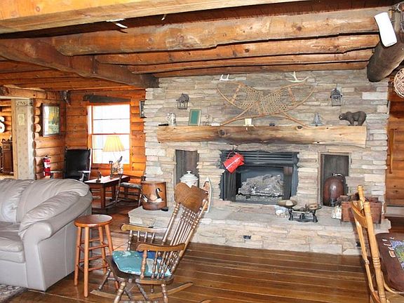 This home has been filled with love & laughter. Log Family/Corporate retreat, 6 BRs (2 mstrs) + 2 BR guest cabin w/gas frpl. Remodeled throughout: kitchen cabinets, quartz countertops, appliances, woodstove in huge country kitchen. Sprawling great room with gas fireplace, corner bar. Lots of nooks and crannies for quiet or creative time. Pergola & fishing cabin overlook stocked pond; campfire spots, water feature, decks, walkways. 2 car garage w/workspace under guest cabin. 2nd pond. Paved drive