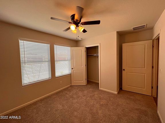 Nestled in the Casa Vista community, this energy-efficient, north-facing 4-bedroom, 2-bathroom residence offers modern comfort. The open-concept great room flows seamlessly into a gourmet kitchen with crisp white cabinetry detailed with black hardware, granite countertops, stainless steel appliances, a spacious pantry, and sleek luxury vinyl plank flooring throughout. Each bedroom is bright and inviting, with blinds and ceiling fans included, and the generous primary suite features ample closet space. Step outside to enjoy a large backyard with a covered patio, low-maintenance artificial turf, pavers, subtle plantings, and gravelperfect for both relaxation and entertaining. The home comes equipped with essential applianceswasher, dryer, and refrigerator and a two-car garage. Located near Jimmie Kerr Blvd, you'll enjoy swift access to employers like Lucid, Walmart, Frito-Lay, Abbott labs, Hexcel etc. Close to Promenade shopping, parks, walking paths, playgrounds, ramadas, and community courts. No hidden management fees and direct owner management !! 12 month lease Tenant pays for all utilities (water, electric etc)