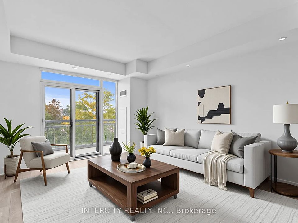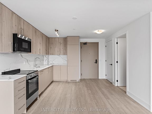 Welcome to Suite 417, a stylish west-facing 612 sq. ft. residence designed for modern living. With its smart open-concept layout and sunset-facing views, this Suite combines everyday comfort with contemporary elegance. The sleek kitchen features quartz countertops, integrated appliances, and modern cabinetry, flowing seamlessly into the bright living and dining area. The primary bedroom offers a peaceful retreat, while the versatile den provides the perfect space for a home office or guest area. A well-appointed bathroom completes the suite with clean, sophisticated finishes. As a resident of King Terraces, you'll enjoy access to resort-style amenities, including a rooftop terrace, outdoor pool, fitness centre, stylish lounge, and 24-hour concierge. Suite 417 is perfect for those seeking style, convenience, and sunset living. With top-rated schools, parks, shopping, and dining just minutes away, everything you need is right at your doorstep. King Terraces is a welcoming community, ideal for families, young professionals, or anyone seeking a peaceful yet vibrant atmosphere. This is where you can create memories, build your future, and truly live your best life.