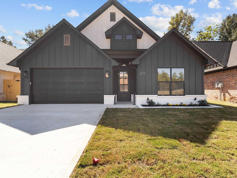 Welcome to 2075 Locklear Ln, Tyler, TX 75703, situated in the desirable Whitehouse ISD school district! This stunning new construction is located in one of South Tyler's most rapidly developing subdivisions. The Builder has thoughtfully crafted every aspect of this home to ensure comfort and style. The home boasts eye-catching exterior color and features charming jellyfish lighting on the exterior front. A small porch adds a welcoming touch. Inside, you'll find an open floor plan designed for effortless entertaining. Enjoy the luxury of custom cabinetry, quartz countertops, and stainless steel appliances, including a gas drop-in range and island. The living room is highlighted by a beautiful gas brick fireplace, perfect for cozy gatherings, and built ins. The master bedroom features a sophisticated accent wall, tray ceiling, and a lavish en-suite bath with a freestanding tub and shower. Two generously sized guest bedrooms provide plenty of space for family or visitors. The fully privacy-fenced backyard offers an ideal setting for relaxation and outdoor fun.