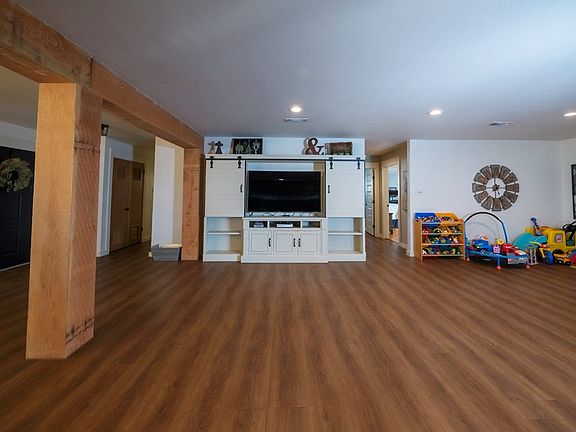 4 bed, 3.5 bath home in desirable NE Andrews! Out of city limits but minutes from town, this house sits on 2.2 acres & has a barn/shop with 1600 sq. ft apartment! (RV hook up in front of barn). Inside, wood beams carve out the dining area, you'll find an oversized master bedroom with original hardwood, dry sauna in the bath, huge laundry room, coffee bar in the sunroom, and a second living area/man cave with a half bath! Neutral tile in the master bath & showers & updated granite throughout!