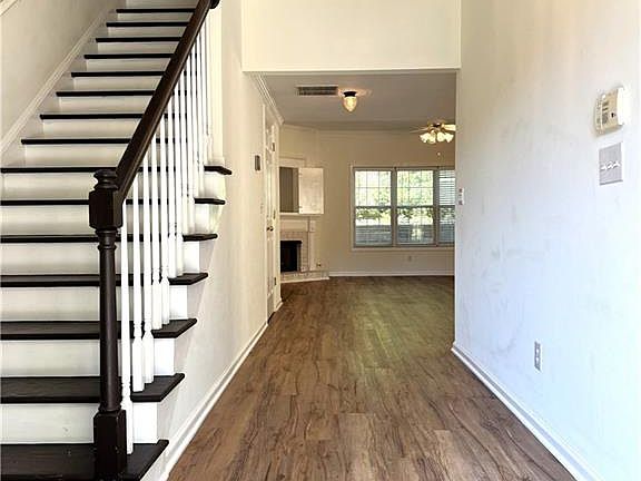 This beautifully maintained end-unit townhome offers the perfect blend of comfort and convenience. The spacious, open-concept floor plan features brand-new luxury vinyl plank (LVP) flooring throughout both the main and upper levels. The kitchen is equipped with stainless steel appliances, granite countertops, and French doors leading to a welcoming front porch, ideal for enjoying views of the community garden. Abundant natural light fills the home, complemented by a cozy fireplace in the living area. Upstairs, the large primary suite includes a full bath, while two additional bedrooms share a second full bath, providing plenty of space for family or guests. Outdoor enthusiasts will appreciate the unbeatable location just steps from a scenic path that leads directly to Lake Lanier, complete with a community dock. Additional amenities include a community pool and a boat ramp conveniently located at the end of the street. With only 28 homes in this peaceful, well-maintained neighborhood, this townhome is truly a rare retreat.