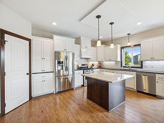 Welcome to Northpointe in Lino Lakes. This newer constructed home is located on one of the largest lots in the development and the backyard is surrounded by a low-maintenance privacy fence. The main floor features an open concept layout, incredible light, engineered hardwood floors and natural wood millwork. You will love the luxury kitchen with stainless appliances, granite countertops, exhaust hood, tiled backsplash, white cabinets and pantry. The large living room has a gas fireplace with stone. Main floor also features an office and ½ bath. The upper level has an incredible primary bedroom with spa-like tiled-bath with walk-in shower, separate tub, dual sinks and incredible walk-in closet. 3 additional bedrooms, upper-level laundry and an additional full bathroom round out the upper level. The lower level features a gigantic family room, bar area and ¾ bath. Enjoy the deck and incredible backyard. Compare to new for value here. See the 3D tour for your own private showing today!