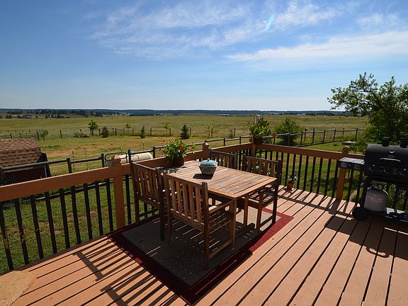 PERFECT HORSE PROPERTY FOR BREEDING FACILITY OR TRAINING OPERATION. GORGEOUS REMODELED RANCH, GOURMET KITCHEN WITH TONS OF CUSTOM CABINETS, SLAB GRANITE COUNTERTOPS AND STAINLESS STEEL APPLIANCES. LARGE REMODELED MASTER SUITE W/HEATED TILE FLOOR, SITTING AREA RETREAT & STEAM SHOWER IN REMODELED BATH. FINISHED BASEMENT W/2 CONFORMING BEDROOMS, 3/4 BATH, OFFICE AND FAMILY ROOM. ALL BATHROOMS ARE REMODELED. TILE FLOORS & NEW HARDWOODS. AWESOME FRONT RANGE AND PIKES PEAK MOUNTAIN VIEWS. New family room built in 2015 adding 502SF additional above grade living space with pellet stove. New furnace. BRAIDED ELECTRIC FENCED PASTURES (50K in fencing!) 2 BARNS W/HAY STORAGE AND WATERERS.