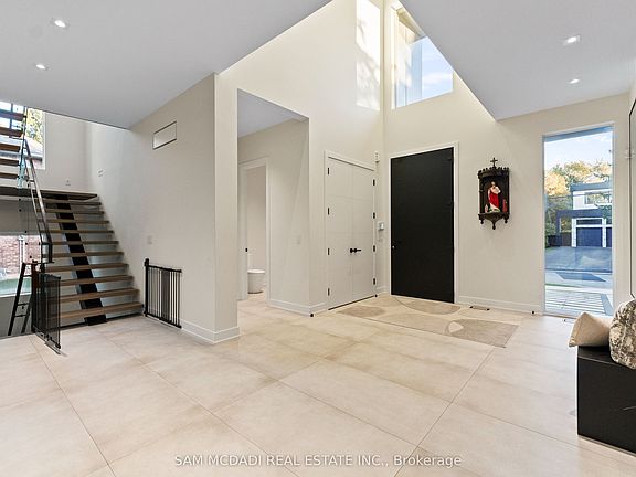 Welcome to 2075 Shawanaga Trail, tucked within the prestigious Sheridan enclave. This elegant residence offers over 6,000 SF of finished living space, thoughtfully designed with 5 bedrooms and 6 bathrooms. A dramatic double-height foyer sets the tone, leading into light-filled interiors where oversized windows showcase the homes architectural elegance. Tray ceilings with recessed and cove lighting create a soft ambient glow, while a two-way gas fireplace anchors the open living and dining areas. A glass-enclosed wine display adds a sculptural statement, perfect for the discerning collector. The chef's kitchen features quartz countertops, integrated appliances, custom cabinetry and walk-in pantry. It flows seamlessly into the main gathering spaces with views of the private backyard. A covered patio invites year-round entertaining, while a main floor office offers quiet workspace. Above, the primary suite is a private retreat with dual walk-in closets and a spa-like ensuite with freestanding tub and glass shower. Three additional bedrooms feature walk-in closets and private or semi-ensuite baths. A second-floor laundry room adds convenience. The finished lower level boasts 9-foot ceilings, a full wet bar, expansive recreation room, guest suite with ensuite, and a flexible room ideal for media or fitness. Outdoors, the professionally landscaped backyard is framed by mature trees, offering privacy, tranquility, and space to customize. Additional highlights include engineered hardwood, built-in Sonos audio, newer roof and windows (2022), and ample parking. Located near Mississauga and Credit Valley Golf Clubs, University of Toronto Mississauga, and highly acclaimed schools. Just minutes to the QEW, 403, Port Credit Village, and scenic waterfront trails.