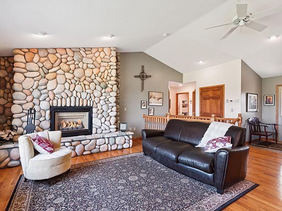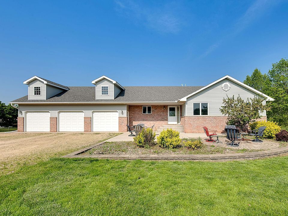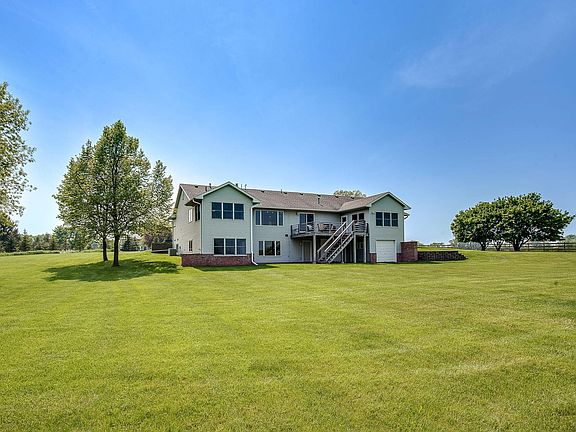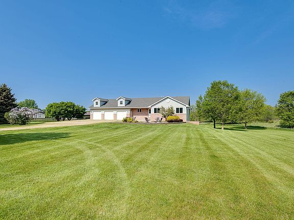 Walkout Rambler on 5+ acres in a country neighborhood featuring 2 sunrooms, an expansive 1348 sq ft of garage spaces & a potential mother-in-law suite. Vaulted Great Room has a stone hearth fireplace & hardwood flrs. Kitchen has stainless appliances, island w/cooktop & double ovens. Spacious dining area extends onto a deck, connecting to a Vaulted 3-season sunroom, overlooking the acreage & wildlife. Owner's suite is a true retreat, w/private bath with jacuzzi, separate shower, laundry, walk-in closet & a private sunroom. Large family room in lower level walks out to a spacious patio. Also, there’s an adjoining space with its own entrance, ideal for a mother-in-law suite or apt. which includes a large room pre-plumbed for a kitchen, a BR, a handicapped-accessible shower & 2nd laundry. Also great for rec room or teenager hangout. Extra features: knock-down ceilings, walk-in closets in all BRs, 6-panel doors, recessed lighting, natural gas, paved roads & front patio with a paver firepit.