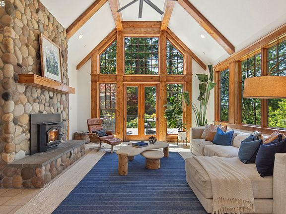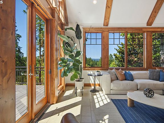 A rare opportunity to own a luxury estate blending timeless PNW design with modern comfort on 5 exclusive acres with a private gated entrance. This 4BD, 3.5BA custom home is a showcase of elevated craftsmanship, with soaring wood beamed ceilings, expansive windows, and 8” knotty alder doors and trim throughout. The vaulted great room features a dramatic floor to ceiling river rock fireplace, hardwood floors, and handcrafted built-ins. At the heart of the home, the gourmet kitchen offers custom cabinetry, stainless steel appliances, quartz countertops, and an oversized island that frames tranquil views of the surrounding landscape. The layout flows effortlessly through open living and dining spaces designed for both entertaining and everyday ease. The main level primary suite is a private retreat with a spa inspired bath, floating woodstove, walk in closet, home office, and patio access. Two additional bedrooms complete the main floor. Upstairs, a fourth bedroom or bonus with full bath offers flexibility for guests, multigenerational living, or creative space. Outside, enjoy resort style amenities including an in ground pool, sun deck, hot tub, fenced dog run, and regulation size pickleball and sport court. The barn includes four stalls, a wash bay, and tack room. A separate arena and shop provide room for animals, hobbies, or storage. The property currently qualifies for farm tax deferral. Recent upgrades include a commercial grade water heater, high efficiency heat pump and furnace, new well pump, smart home features, and a whole home generator. This is a true lifestyle estate that combines the rare luxury of close in acreage with exceptional privacy, premium amenities, and timeless design, all just minutes from Lake Oswego, West Linn, and Wilsonville.