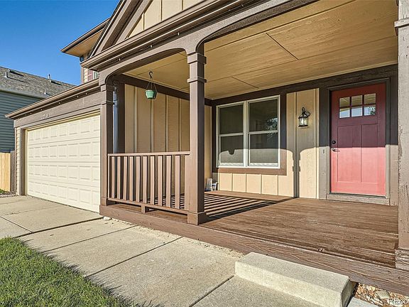 Nestled in the up-and-coming Green Valley Ranch, this beautifully updated home is just a couple of blocks away from the Green Valley Ranch Golf Course. This two story residence, boasting a freshly painted interior is perfect for entertaining, featuring 4 bedrooms and 3 bathrooms. The main living area is bathed in natural light, thanks to an abundance of windows. The kitchen, equipped with tall white cabinets and granite counters, flows seamlessly into the living room providing an open floor plan. Just outside you can access the deck, where you can enjoy fresh air and open space to the rear of the property. Upstairs, you'll find new carpet throughout including the primary bedroom featuring a 3/4 bathroom with dual sinks as well as two spacious bedrooms and a full bath. The basement offers your guests their very own quarters with a bedroom and en-suite full bathroom as well. The large backyard, perfect for entertaining, wraps around the home. The roof is only 4 years old, water heater 3 years old, HVAC has been recently serviced and meticulously maintained and the front porch and fencing has been freshly stained. Conveniently located near Downtown, DIA, Anschutz Medical Center, and with easy access to I-70 and the mountains, this home is the epitome of modern, comfortable living!