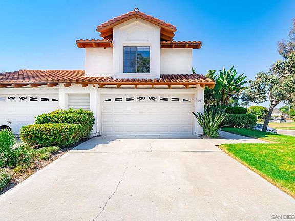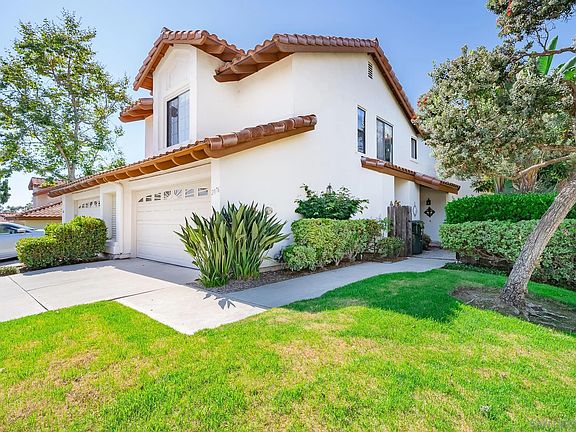 Welcome to this sunlit corner lot twin home in the heart of Encinitas, where comfort meets coastal charm. This light and airy home features high ceilings, recessed LED lighting, custom crown molding, tray ceilings, skylight and a decorative fireplace as the central focal point in the living area. The living space seamlessly opens to a private backyard, perfect for outdoor enjoyment. The eat-in kitchen is beaming with natural light from multiple windows that overlook the outdoor gardens. The roomy primary suite includes a large vanity with plenty of storage, walk-in closet with custom organizers, and nook/bench for reading or office space. Downstairs bedroom and half bath is conveniently located and can be used as an office or guest bedroom. Custom upgrades include newer luxury vinyl flooring, granite countertops, tall baseboards, custom tall vanity in the primary bathroom, custom window sills in living areas and bedrooms, Kohler extra deep sink with designer faucet in the kitchen, copper plumbing throughout. The professionally landscaped yard is private with no neighbors behind, adorned with stunning brick accents, lush gardens, and drip irrigation, enhancing your outdoor living experience. You'll love this peaceful neighborhood, complete with greenbelts just across from your home. Enjoy easy access to renowned beaches, walking and bike trails, highly-rated schools, dining, shopping and more.