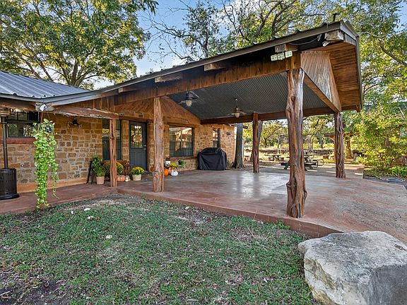 Welcome to an Outstanding Unrestricted Estate with Wildlife Exemption for Songbirds! Just minutes from the charming town of Burnet, TX, this remarkable property offers endless potential. The land features over 60 pecan trees, 3 pear, 4 walnut, and 2 jujube groves, creating a peaceful and productive setting. Two scenic ponds sit at the front corners of the property, naturally fed by Hamilton Creek, with a smaller pond near the chicken coop originally designed for ducks. The main home includes 4 bedrooms, 2.5 baths, two offices, two living areas, a formal dining room, spacious kitchen, and laundry room. Behind the main home sits a bunkhouse, perfect for guests or extended family. Both the main home and bunkhouse run on solar power during the day and PEC electricity at night, with panels located on a stand near the coop and pond. The primary suite includes a decorative light-up log fireplace, while the dining room is accented by a classic Earth Stove wood-burning unit, blending comfort with rustic charm. The guest house includes 3 bedrooms, 1 bath, and an open kitchen-living layout with a patio area for outdoor enjoyment. Affectionately called “The Heart,” the third dwelling is currently used as a place of worship and includes a studio room, bedroom, full bath, and open living space with a back patio overlooking the serene property. Attached to “The Heart” is a large shop, offering endless possibilities for hobbies, storage, or a home-based business. This rare unrestricted property combines flexibility, functionality, and natural beauty—ideal for investors, families seeking a compound, or business owners looking to live and work from one estate. Don’t miss this incredible opportunity to own a truly unique piece of Texas paradise!