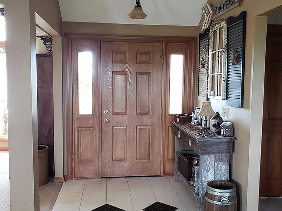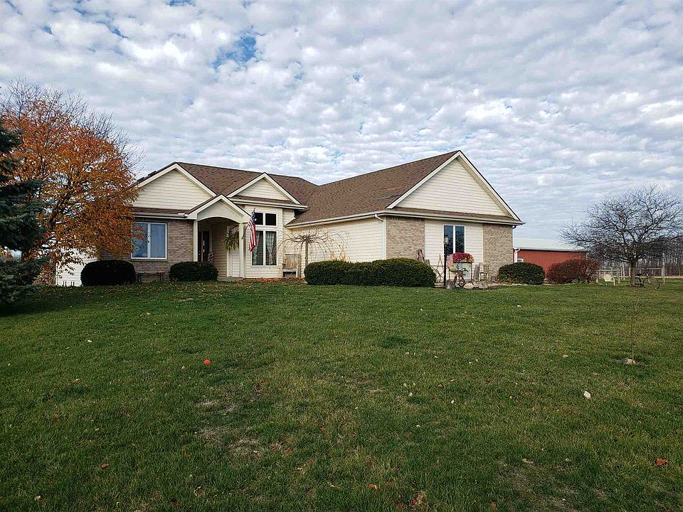 Inviting country charm awaits! Surrounded by fields sits this spacious ranch home on a full finished basement. Foyer entrance has tile leading to the open concept floor plan. Enjoy your morning coffee in the dining area bright with natural light. Living room features cathedral ceiling & marble wood burning fireplace for those cozy days in. Main level has split bedroom floor plan with 2 bedrooms and a full bath on one end. Master bedroom on the other end of home features tray ceiling and master bath with jetted tub, stand up shower, and walk in closet. Two additional bedrooms are in lower level and plenty of space for a large family room, rec room, or both! Deck and above ground pool face the west for nature and sunset views. Property features a barn with sliding doors, electricity + water, and two horse stalls leading to the 3 grazing areas as well!