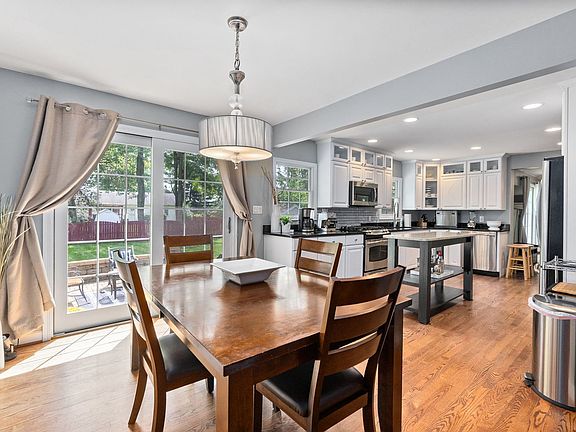 Introducing an impeccably updated 4-bedroom, 3.5-bathroom home in the heart of Geneva, just minutes all the town's attractions. The open floor plan seamlessly integrates with stunning hardwood flooring throughout the first floor. The spacious living room connects effortlessly to the dining area, leading to an expansive paver patio for indoor-outdoor harmony. The remodeled kitchen boasts recessed lighting, elegant white cabinetry with glass-front display boxes, granite countertops, subway tile backsplash, stainless steel appliances, and a walk-in pantry. The cozy family room features a brick-front fireplace with a white mantle and crown molding, plus a slider to the patio. The sophisticated primary bedroom suite offers hardwood floors, crown molding, a walk-in closet, and a dreamy en-suite bath with radiant heat flooring, quartz-top floating vanity, dual vessel sinks, and a custom glass-enclosed shower. Three more bedrooms with ample closet space, a transformed hall bath with granite vanity and heated floor, and a finished basement with wet bar, media space, full bath, and storage complete the home. The fenced backyard boasts mature landscaping, a paver patio with sitting wall, and Enhanced storage shed equipped with electrical. Enjoy swift access to downtown Geneva, the METRA station, and the plethora of fabulous shopping and dining establishments along second street and Randall road . This home is the embodiment of completeness and is ready for you to move in and make it your own.