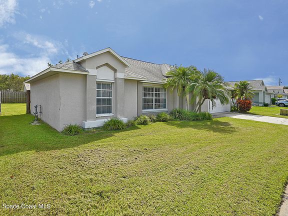 This move-in ready home is situated perfectly off of Lake Washington Rd. with only a few minutes to EGAD, the beaches & I95. Excellent floor plan, covered patio , New roof to be added before closing. Cathedral ceilings offer aesthetic benefits of elegant design and spaciousness as well as functional perks such as improved air circulation and versatility of lighting options. LOW HOA of $150 A YEAR! Vaulted Ceilings , 1846 Sq. Ft. of Living Space. Bring your pets, large fenced in backyard. Plenty of room for your dream pool. split floor plan offers privacy for the primary bedroom including his + her own walk-in closets + large bathroom. Bedrooms 2 + 4 are located on the opposite side of the home. This home is very well maintained & loved. Peaceful backyard encompassed by attractive fencing as well.