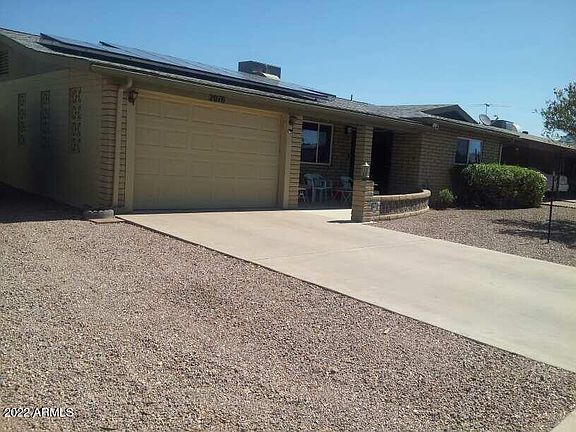 PRICE REDUCTION! This lovely 2-bed, 2-bath residence w/an AZ ROOM in the 55+ adult Community of Apache Villas is waiting for you! Fantastic curb appeal displaying a 1.5-car garage, RV gate, charming desert landscape & a welcoming patio. Discover a pleasant open layout showcasing tile flooring, ceiling fans, Great Room, Reinforced windows, Workshop & backyard access. The spotless kitchen comes w/ wood-paneled cabinets, built-in appliances & a peninsula w/a breakfast bar. The main bedroom has ample closets & a private bathroom for added comfort. Grab your favorite drink & relax in the LARGE backyard offering 2 storage sheds, The OWNED Solar Panels ($20k+) help you save $. Security Doors on Front/Double Doors in Back. This Partially Furnished move-in-ready Home is waiting for you!