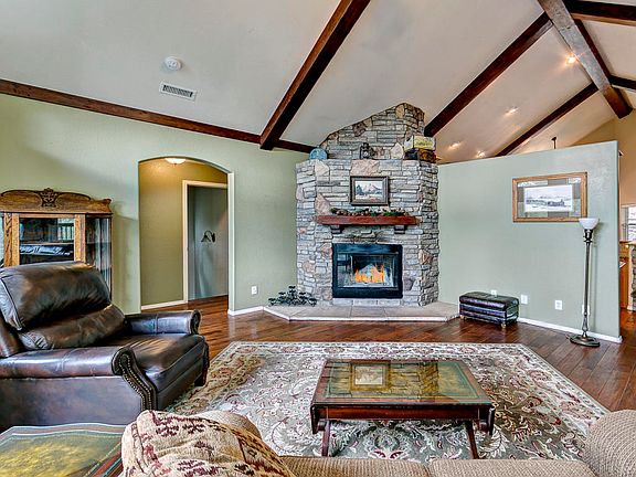- Interior Features: Ceiling Fan(s), Eat-in Kitchen, Kitchen Island, Master On Main, Raised Ceilings 9+ft, Smoke Detector(s), Walk-In Closet(s), Wash/Dry Connection, Beamed Ceiling, Counters-Granite, Fireplace-Woodburn, Kit/Din Combo, Central Vacuum, Utility Sink, Counters-Tile, Jetted Tub, Counters-Solid Srfc, Garage Door Opener(s)