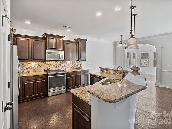 Double covered front porches welcome you home. Entering the home you will notice the wainscoting surround, crown molding, arched entryways, dark wood floors and natural light carried throughout the home. Two car attached garage.