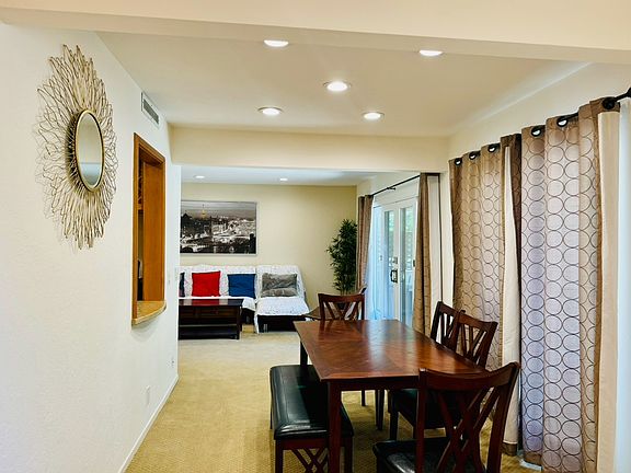 HWY 9/85. Situated in a redwood grove with a serene pond along the Saratoga Creek. Tons of natural light & indoor-outdoor feel throughout home. Great layout with furnished 3 bedrooms, 2 updated bathrooms, in unit laundry. One assigned car port. Many open parking spaces.