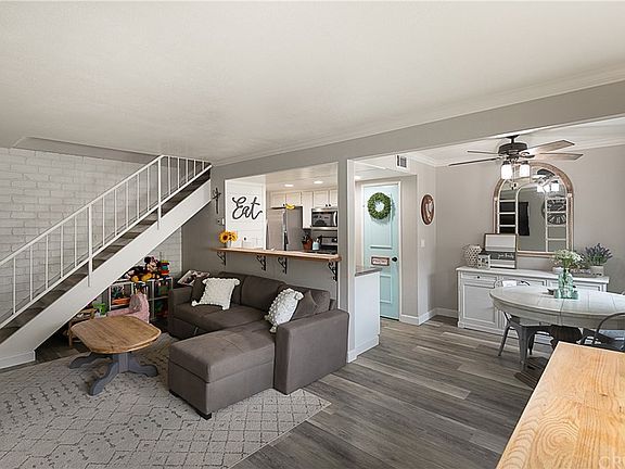 YOU MUST SEE THIS GORGEOUS MOVE IN READY TOWNHOME. This is a beautifully upgraded two bedrooms and one bath unit. The open style kitchen offers newer cabinetry, granite counters, butcher block pass through counter, recessed lighting, pantry, stainless steel appliances, built in microwave and custom shiplap details. There is a lovely dining area with upgraded ceiling fan and light. Upstairs offers a remodeled bathroom with a charming barn door, LED lighting, newer vanity ,mirror and all new fixtures. The master bedroom offers vanity area, ceiling fan, crown molding and walk in closet with tons of storage space. Second bedroom is light and spacious with ceiling fan and crown molding. An attached patio area is fully fenced for privacy. There is a shared garage where you can park one car. Right next to it is an assigned parking space. The garage has cupboards and a closet which can handle a lot of storage items. This one of the handful of units in this complex that offers washer and dryer hookups, nearly new washer and dryer are included. The association features, pool, spa ,play ground area, picnic area This home has a lower HOA, and NO MELLO ROOS. Centrally located in Santa Clarita near award winning schools, parks, shopping, dining and more. Call today for your private showing!
