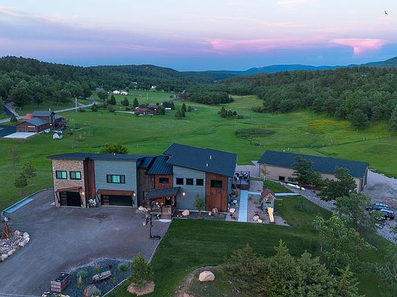 For more information, please contact listing agents Scot Munro 605-641-6482 or Heath Gran 605-209-2052 with Great Peaks Realty. Nestled on 5.25 acres with a wandering seasonal steam, this stunning home filled with gorgeous finishes and custom details is tucked among a desirable neighborhood with easy central access to everything in the Northern Hills. The main level features a spacious living room with vault plus floor to ceiling windows, a gas fireplace, and hand-selected lighting that creates a warm and inviting space. The spacious primary suite includes a dual-sink bathroom and tiled step-in shower. The kitchen is a dream with granite countertops, pull-out shelving, a corner pantry, and a large sliding door that opens from the ample-sized dining room out to the covered deck – all of which is great for gatherings. The deck is surrounded by vast views and a built-in salt-water hot tub. Convenience is added by the charming half bath with a farm sink and unique flooring, plus main floor laundry and a huge entry room for coats & shoe storage. Plus, electric blinds on the windows! As a bonus – the main level of the home was built with some extra space & wide doorways, to be nearly ADA ready. Upstairs, a lofted sitting area doubles as the office space; plus, you’ll find two bedrooms, a full bathroom, and access to a private lock-out apartment that is a lucrative Short-Term rental.