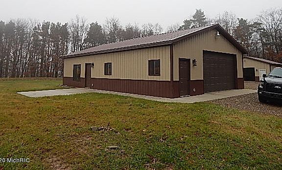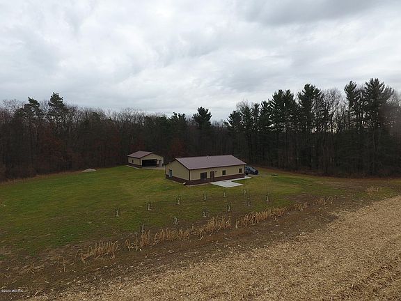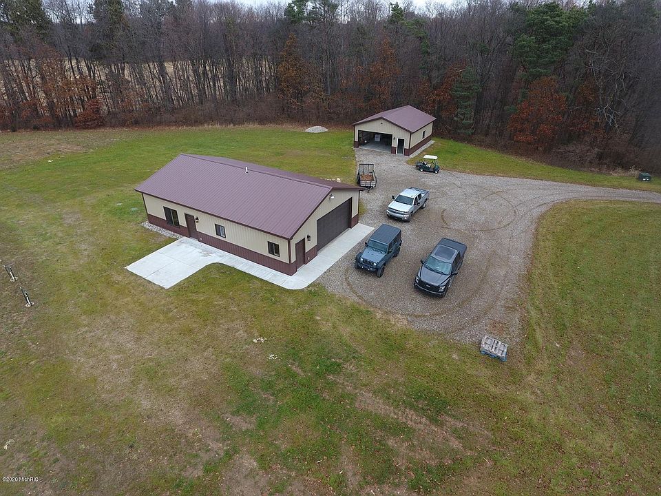 Land for sale in Calhoun County Michigan, Hunting Land for sale in Calhoun County Michigan, Lakefront Land for sale in Calhoun County Michigan - 120 acres including a finished 32 x 48 pole barn / lodge with all the amenities of home as well as a place to drive your vehicle inside. Another 26 x 30 pole barn is approx. 100 ft away and is used for storage of anything you choose, toys, equipment, gear, etc. Well and septic along with a fully functional drain field. These buildings are very recently built and are extremely nice. As you enter the winding crushed stone driveway that leads back to this secluded and beautiful location you will instantly notice the quality of this property before you are even able to see the pole barn / lodge. The rolling hills are covered with mature southern Michigan timber of oaks and cherry and maple trees and the fields of agriculture that were planted to corn this year separate the wooded sections. The owner is a very serious whitetail deer hunter