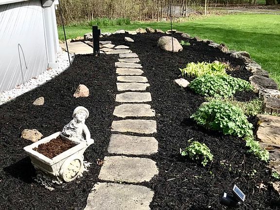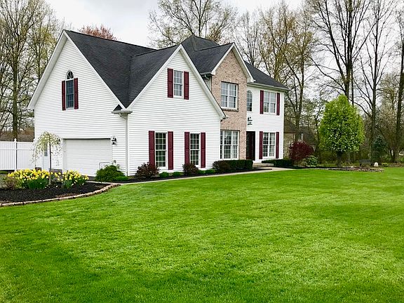 Nearly an acre for kids or pets to ramble as they please! Entering within the soaring foyer, you will instantly be smitten with its meticulous, minimal look and comfortable feel. An inviting kitchen, dinette, and family area provides a bright, open space for everyday family life. Tall windows open the layout to natural light and neutral walls and flooring maintain fluidity. Feast your eyes on the abundance of storage, granite counter surfaces, and perfectly complimenting stainless appliances in the clean-lined maple kitchen. Cozy stone-faced gas fireplace. Formal living and dining spaces are defined by hardwood floors that are easy to maintain and clean. Revel in the luxury of space and privacy in the owner suite. The en-suite bath is prepared to pamper you with its dual sinks, step-in shower, and jet spa tub. Lower level game room with rough-in plumbing for a bath. Timber deck and brick-paved patio, shielded in privacy from a border of trees and maintenance-free vinyl fencing.