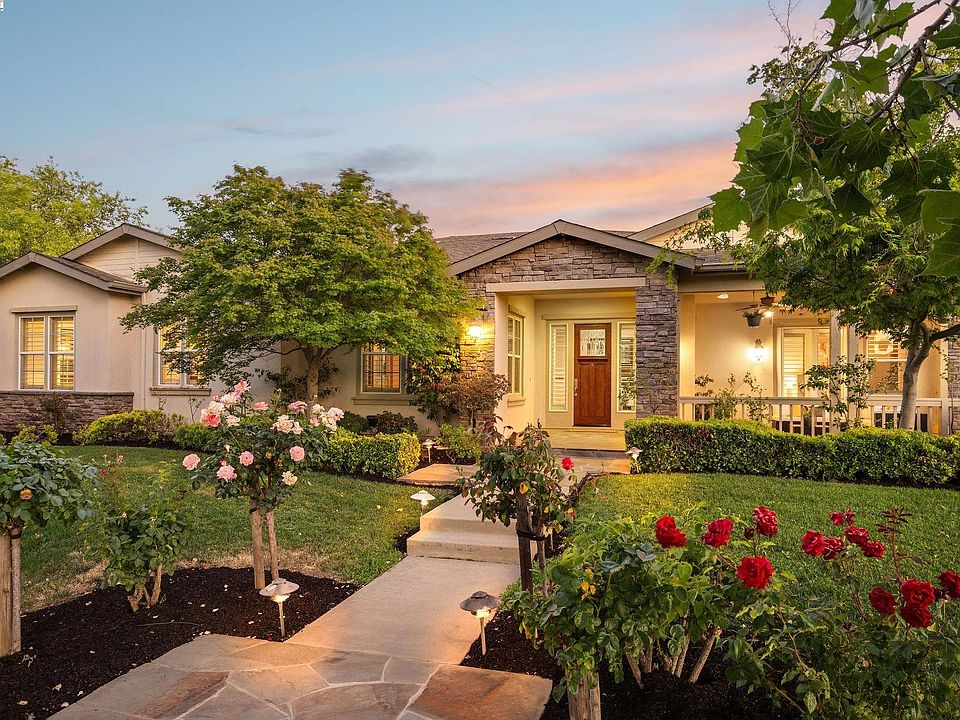 Elevated and unparalleled luxury resort-like living at its finest in the heart of Livermore! Live the lifestyle you have always been dreaming of in this well- appointed and stately single-story executive wine country home. Rolling hills and panoramic views are the perfect backdrop for this rare Arroyo Estates beauty. This sprawling former model home is rich in warmth with high-end designer details throughout. Expansive front porch area is a great space to congregate with neighbors and a glass of local wine. Step inside to a welcoming foyer and impressive 10-foot ceilings throughout. Features include hardwood floors, wide baseboards, crown molding, recessed lighting, decorative beams, surround sound, dual pane windows/doors, shutters, an abundance of custom cabinetry and tons of storage. The chef's kitchen with wolf/subzero s/s appliances is the epitome of the entertainer's dream and sure to inspire many delicious meals and social gatherings. Your very own personal oasis with sparkling sports pool/spa, waterfall, swim up bar and outdoor kitchen pavilion is just steps away providing a luxurious escape, allowing you to unwind and rejuvenate in the comfort of your own home. Solar owned. Prime southside location situated on a premium corner lot. Walkable distance to thriving downtown.