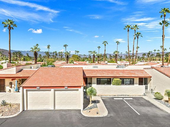 Experience classic Palm Springs living in this stylishly updated Canyon South 1 condo, designed by noted architect Laszlo Sandor. Built in 1974, this 2-bedroom, 2-bath home spans 1,325 sq. ft. with clean lines, soaring ceilings, and mountain views throughout. Upgrades include a refreshed kitchen, renovated bathrooms, and updated windows and sliders. Stone tile floors extend to two private patios, both with mountain views. Fully equipped with laundry and a one-car garage, this home is move-in ready. Canyon South 1 features three pools and spas, and a conveniently located south Palm Springs setting just minutes from Smoke Tree Village, Koffi, and downtown Palm Springs. HOA dues include water, trash, exterior pest control, roof, and exterior paint. Ideal as a full-time residence or weekend getaway, this condo blends architectural style with easy desert living.