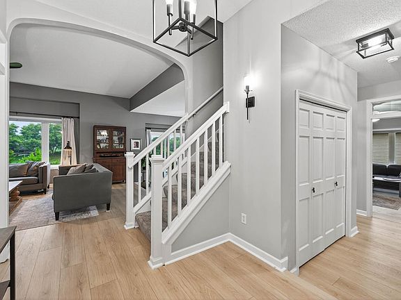 Welcome to your dream home with beautiful views of the backyard pond & nature! This meticulously maintained 4-bedroom w/office, 4-bathroom residence combines modern upgrades with timeless charm. Step inside to discover a bright and airy living space with oversized windows that offer stunning views of the pond, perfect for watching sunsets and the local wildlife, including herons and ducks. Recent renovations include a complete kitchen remodel in 2021, featuring high-end appliances, and newly updated lighting with dimmer switches, enhancing the elegant ambiance throughout the home. The comfort continues with new black matte faucets, door hardware, and recently replaced roof (2024), adding to the home's curb appeal. Relax on the newly stained deck (2025) or entertain in the private backyard. Enjoy the cozy warmth of two gas fireplaces and unwind in the sauna after a long day. This property is equipped with modern conveniences, including a new washer and dryer, an electric tankless water heater, and a wired system for dog monitoring. With an oversized garage and a seal-coated driveway, this home is ready for you to make it your own. The extra-tall ceilings in the lower level, along with oversized windows, make this home truly special.
