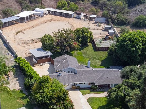 Wow!! Great opportunity to own a beautiful, newly updated single story Traditional Ranch style home on an enormous 1.37 acre all usable lot! Fabulous location in a quiet Covina Hills neighborhood surrounded by upscale estate homes in the perfect family-oriented environment. Easy commute to LA or OC as the 10 and 57 freeways are close by. Sitting up on a gentle knoll away from the street, the front porch has a beautiful neighborhood view, old growth trees and expansive lawn fully enclosed with wrought iron fencing & gated entry. The back of the property is fully fenced with extra tall block wall surrounding the entire back and sides of the property. The home is light and bright, turnkey ready to move into with all new paint inside and out, all new Luxury Vinyl wood wide plank flooring, new LED lighting, and built-ins. The remodeled kitchen with island and walk in pantry, is perfect for entertaining and opens to the family room with brick fireplace and sliding glass doors overlooking the fully wood fenced separate backyard area with enormous lawn for the kids to play and enjoy. Several dining areas including a formal dining room and living room combo. Newer Primary Suite includes his and hers walk in closets, built in bookcases, elegant bathroom with antique ball and claw soaking tub, large walk-in shower and tiled vanities. The Jack and Jill bedrooms are at the other end of the house and include built in window seats with lots of natural light. One of the bedrooms has a Hollywood style make up desk and the other bedroom was used as a music room with full sound proofing. The two other full bathrooms and a guest powder room have been updated over the years. A fourth bedroom has been converted to a home office but could be repurposed back to a bedroom. Next to the kitchen you will find a laundry room with built in storage. The property is currently used as a Horse Ranch with numerous large paddocks, shedrow style barn, wash racks, cross ties, turnouts, large sand arena pad, lights, shavings storage and hay storage cover. Plenty of large equipment and trailer parking. If horses are not your thing, this large lot might make an SB9 Lot Split, Guest House, or ADU candidate. The size and private location of the lot makes for an interesting investment opportunity. A family home like this does not come on the market very often, and for good reason, you will never want to leave.