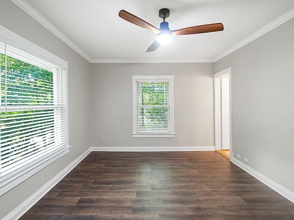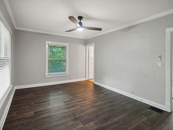 Wood burning fireplaceHigh ceilingsGorgeous hardwood floorsCrown moldings