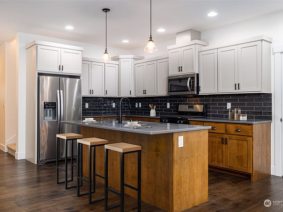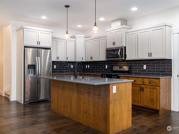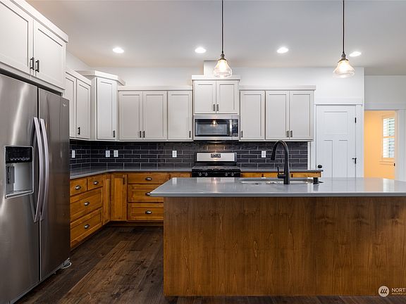 Discover modern farmhouse elegance nestled at the end of a peaceful cul-de-sac. Hardwood floors, a cozy living room with a gas fireplace, ship lap walls and a stunning kitchen with custom cabinets and quartz counters await. Main level living with an open concept kitchen/living. The primary bedroom boasts a large walk-in closet, soaking tub, and walk-in shower. Upstairs, find bedroom, additional living space & a bathroom. Lots of recent upgrades including central AC, mini-split for additional cooling upstairs, leaf guard gutter system, fencing and custom shutters. Close to Lynden amenities, Northwood corner market, and parks, this home offers the perfect blend of tranquility and convenience. Experience modern farmhouse living at its finest.