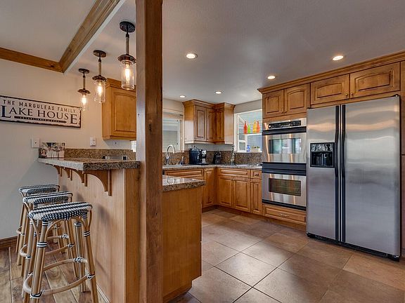 As you enter the home, you will appreciate the teak hardwood floors and billiards/game room, leading to the updated kitchen with a new induction range cooktop, quartz countertop, and tile backsplash. Two new heating / AC units and a fireplace are also on the main floor. You will love the large primary suite with stunning lake and mountain views. The primary bath boasts heated tile floors, a jetted tub, and a walk-in shower. There is an attached two-car garage (although one space is being used). This is a fantastic location: within minutes of dozens of restaurants, markets, and entertainment and only 20 minutes from Heavenly Ski Resort.