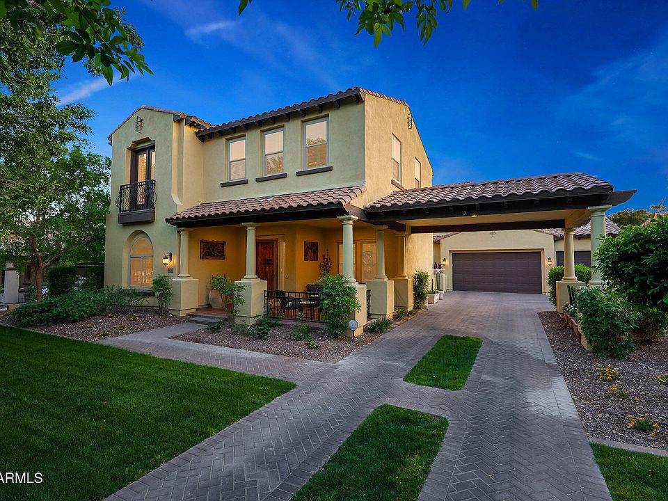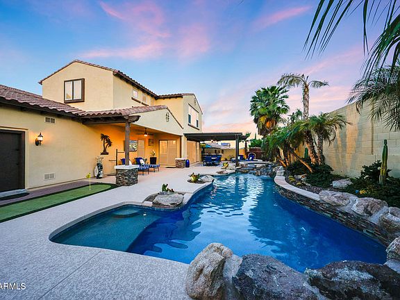 Experience the perfect blend of timeless craftsmanship and modern elegance in this rare TW Lewis-built Spanish Colonial residence, ideally situated along Verrado's iconic, tree-lined Main Street. Just one block from top-rated schools, community parks, dining, shopping, and golf, this home captures the essence of luxury living in the heart of Verrado. Recently updated with new kitchen, baths, carpets, interior paint, lighting, and plumbing fixtures, this home feels brand new while retaining its signature character and charm. The gourmet kitchen serves as the heart of the home, showcasing premium Wolf and Sub-Zero appliances, custom cabinetry with champagne bronze hardware, and refined finishes that will delight the most discerning chef. Artisan-crafted Spanish tile accents and elegant architectural details flow throughout, creating a sophisticated yet inviting ambiance. Designed by TW Lewis for both comfort and style, this residence represents the very best of Verrado living, a rare opportunity to own a home that is as iconic as its address.