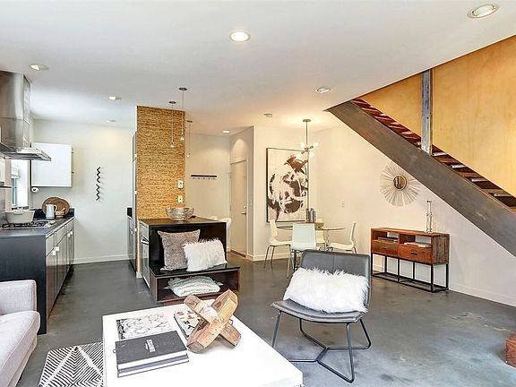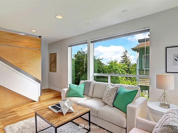 2B2B + flex space for an office. Air Conditioning on all floors. Exquisite modern living with three full floors of unique & thoughtful architectural details. Clean lines, bright & airy with well thought out spaces. Main floor living consists of entry, dining area, kitchen, living room & access to private patio. Concrete floors, Paperstone counters & open steel shelving in the kitchen. 2nd floor bedroom with gorgeous windows & vaulted ceiling, full bath with flex space & beautiful sustainably harvested white oak hardwood floors. Open master suite on 3rd level with remodeled large bath, frameless shower, heated Master bathroom floor, custom walk-in closet & your own private deck. Green built home, secure underground parking, EV charging unit. Pets allowed for additional monthly charge. Transportation Microsoft Shuttle down the block 0.6mi to Light Rail Station 0.6mi to Pike/Pine Area 1.8mi to Downtown Seattle 1mi to Arboretum Renter responsible for all utilities. No Smoking Small dogs under 25lbs 1 Parking spot available in garage. Parking Pass available for street parking