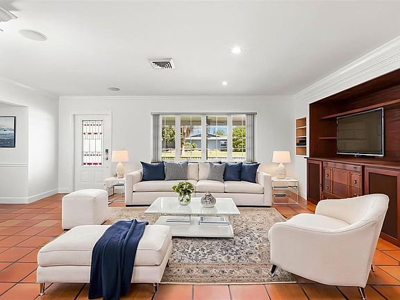 Discover the perfect blend of coastal charm and modern comfort in this expansive single-family home built on a generous ~0.31-acre corner lot. This sprawling retreat offers a split-bedroom floor plan ideal for entertaining, with a separate BONUS SPACE ideal for IN-LAW quarters providing ultimate flexibility for multi-generational living or guest accommodations. Enjoy effortless access to renowned local attractions like ANNA MARIA ISLAND, De Soto National Memorial, Robinson Preserve, Perico Preserve, Bradenton Country Club, GT Bray Park, and LECOM Park, plus quick connections to DOWNTOWN Bradenton, pristine beaches, major interstates, hospitals, vibrant shopping, and diverse dining options. Located a short stroll down the street to the Causeway Beach and highly rated neighborhood schools, this huge CORNER LOT is lushly landscaped with vinyl privacy fence and ambient outdoor lighting. The expansive driveway accommodates ample off-street parking, plus extra fenced in space is available for RV/BOAT parking. A convenient storage shed offers extra organization. Entertain in style from the covered front lanai with ceiling fans or retreat to the rear tropical oasis complete with a sparkling pebble finished salt-chlorinated pool, relaxing spa, fire pit, swing, and refreshing outdoor shower. The covered rear lanai is your private haven for sunset gatherings. Through the glass-front door, you're greeted by a freshly painted interior showcasing timeless decorative woodwork, crown molding, recessed lighting, 5¼-inch baseboards, Terra-cotta style tile flows seamlessly underfoot, and Wayne's Coating/chair rail on walls. The living room impresses with a BUILT-IN entertainment center and ceiling speakers for immersive audio. The dining room glows under decorative lighting, setting the stage for memorable meals. The heart of the home is the island kitchen with breakfast bar, offering views straight to the pool deck. Outfitted with granite countertops, tile backsplash, stainless steel appliances, commercial-grade Kenmore side-by-side refrigerator/freezer, glass cooktop range, built-in microwave, and single-basin sink. Solid wood cabinets line the space, paired with a WALK-IN PANTRY for effortless storage. The INSIDE UTILITY room features a utility sink and ~2023 water heater. A separate BONUS OFFICE provides a quiet workspace, while the MEDIA ROOM between the main living area and in-law space boasts double entry doors to the front lanai, perfect for movie nights or overflow guests. Three guest bedrooms on the north wing feature luxury vinyl plank flooring. The third bedroom, closest to the pool deck, also includes an en-suite bath with single vanity and stand-up shower ideal as a guest poolside retreat. The oversized master suite positioned off the rear boasts a huge walk-in closet and coffered/tray ceilings. The en-suite bath indulges with dual vanities, a jetted garden tub, stand-up shower, and all-tile finishes. UPDATED VINYL WINDOWS flood the home with natural light enhanced by recessed lighting for ambiance. Also accessible by its own private entrance, the in-law space feels like a standalone retreat with a BONUS GREAT ROOM, morning kitchen, walk-in closet, full bathroom w/laundry closet, and pool access. Dual AC units, security cameras, NEWER METAL ROOF, and property location in Zone X provide comfort and peace of mind. Don't miss this jewel combining beach proximity, downtown ease, and resort-style living! Schedule your tour today!