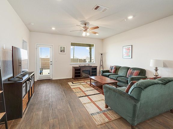 Charming 4-Bedroom Home on an Oversized Lot 4 Bedrooms | 2 Bathrooms | 1,908 Sq Ft | One of the Largest Lots in the Neighborhood. Welcome to this adorable, move-in-ready home featuring a beautiful stone and brick exterior and sitting on one of the largest lots in the neighborhood! Inside, you’ll find wood-look floors that flow throughout the main living spaces, complementing the high ceilings and open-concept layout that connects the family room and dining area—perfect for everyday living or entertaining guests. The kitchen is a true standout with a large breakfast bar, ample cabinet space, and gorgeous countertops—a dream for any home cook or entertainer. The primary bedroom is a spacious owner’s retreat, offering comfort and privacy. Step into the ensuite bathroom and discover a surprise bonus: TWO large owner’s closets—no more sharing space! Enjoy relaxing evenings under the covered patio, whether you’re cooling off under a misting fan in the summer or cozying up next to a fire on cooler nights. Plus, with no neighbors directly behind you, you’ll love the added privacy and peaceful backyard setting. Additional Features Include: Fully Paid-Off Solar Panels – enjoy lower energy bills from day one. Full Sprinkler System – easy lawn maintenance year-round. Updated Roof (June 2025) – peace of mind for years to come. Covered Patio – perfect for outdoor living. Great Neighborhood Setting. This home has everything you’re looking for—style, comfort, space, and smart upgrades. Don’t miss your chance to make it yours! Contact us today to schedule your private showing.