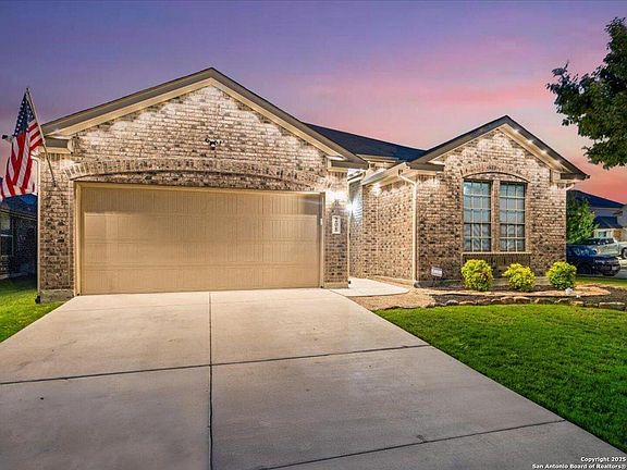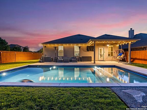 Prepare to fall in love with this stunning 4-bedroom, 2-bath single-story home with a sparkling pool! Nestled in the highly desirable Turning Stone community in Cibolo, this home offers both luxury and convenience - just minutes from Randolph AFB, Cibolo's charming Main Street, top-rated schools, and lively shopping centers. Step inside to a bright, open-concept layout where the chef's kitchen truly shines, featuring a center island, stainless steel appliances, abundant cabinetry, and a stylish tile backsplash - all overlooking the inviting family room and dining area. The spacious split primary suite offers a private retreat with dual vanities, a large walk-in closet, and an oversized walk-in shower. Three additional bedrooms and a secondary bath provide plenty of space for family or guests. Step outside to a covered patio overlooking the private, fenced backyard with a beautiful pool - perfect for relaxing or entertaining. A well-maintained storage shed offers extra space for tools, gardening supplies, bikes, or seasonal items, keeping everything organized and out of sight. Welcome home!